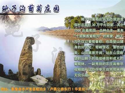鲍子沟村山色秀美、景色宜人,有着悠久的栽植葡萄历史,生产的玫瑰香葡萄个儿大、皮薄、含糖高、口感细腻。但多年来,由于没有知名度,该村种植的葡萄一直销路不畅,每到葡萄收获季节,村民不得不将葡萄运到20多里外的昌黎去卖,并将自己的葡萄称为昌黎葡萄。为解决这一问题,村两委班子先后多次外出取经,并在县工商局的帮助下,在国家工商总局注册了“鲍子沟”牌商标。商标注册后,鲍子沟人开始通过上电视、登报纸、让亲朋好友带到周边各省等多种方式,大力宣传自己的品牌。广泛宣传加上良好的品质,鲍子沟葡萄很快出了名。每到收获季节,外地客商云集鲍子沟,葡萄价格明显提高。一些有眼光的村民还借鉴外地的经验,建起了恒温库储存葡萄,等到春节期间投放市场,收益倍增。